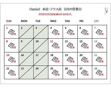【2月の定休日のお知らせ】